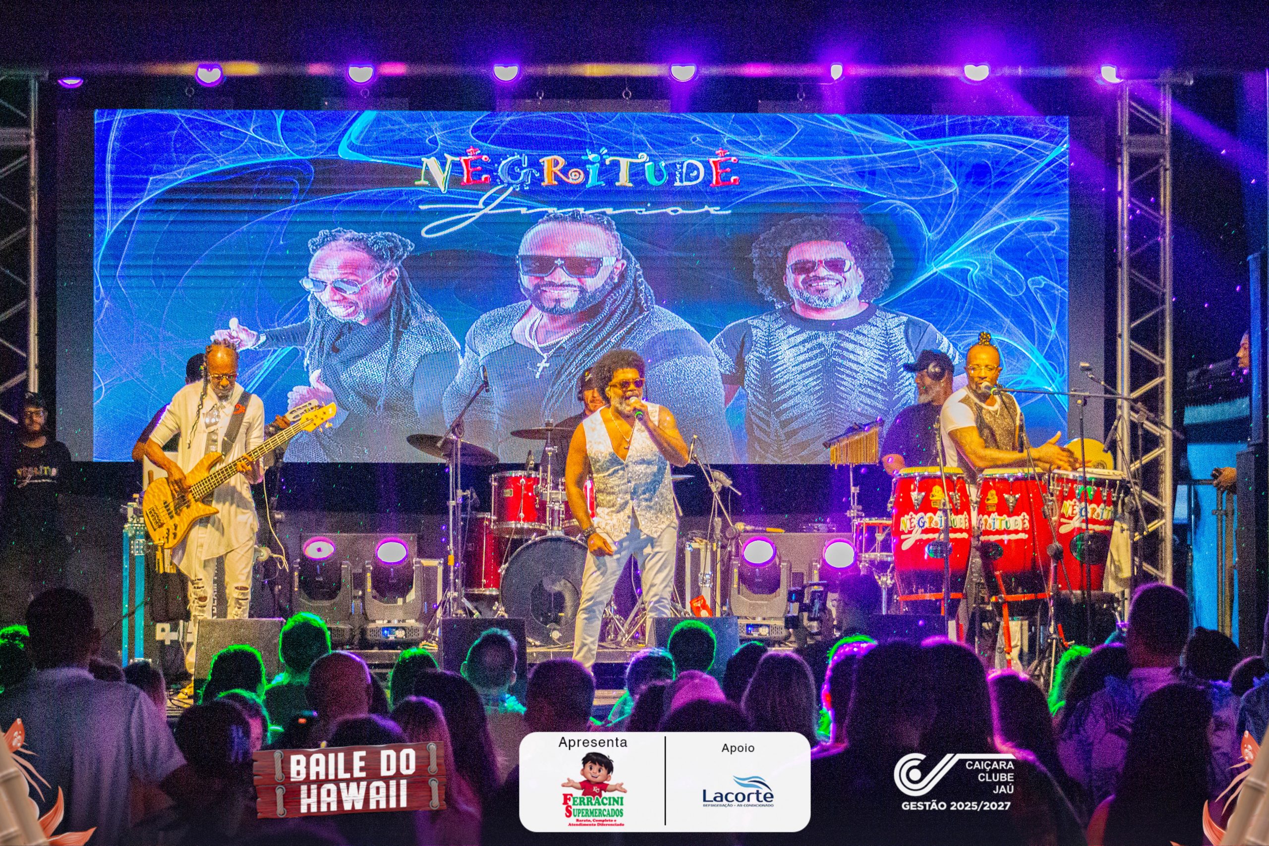 A noite foi embalada pelo show do Negritude Júnior, nas piscinas, e pelas apresentações da Banda Cidadão Comum e Bamboa Samba Club, no salão social, garantindo animação do início ao fim.